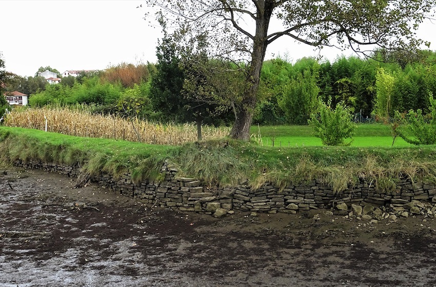 Un muro que evidencia cómo se convierte una marisma en tierra firme a salvo de las mareas regulares, en Irun. (Josu NARBARTE | UPV/EHU)