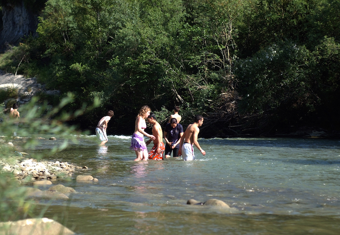 Bajo la imponente foz de Lumbier, en la sierra de Leire, el río Irati ofrece zonas con poca corriente para un baño tranquilo de aguas turquesas. Se accede por el pueblo de Irunberri. Sin duda, merece la pena atreverse a sumergirse en este ecosistema, aunque las paredes que ejercen de parapeto contra el viento alcanzan en algunos puntos los 400 metros y el agua del río esté más bien fría.