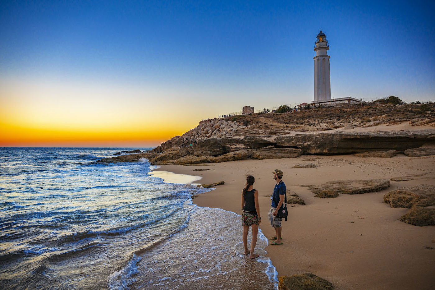 El faro de Trafalgar se yergue como un cíclope que custodia estas costas. Un lugar de indudable magnetismo, en el que cada atardecer una marea humana ocupa las dunas para despedir con aplausos al astro rey, frente a este horizonte bajo el que bullen los atunes. Estos peces marcan las señas de identidad de esta tierra, alimentando su economía, su arte e incluso los nombres de sus calles y pueblos.