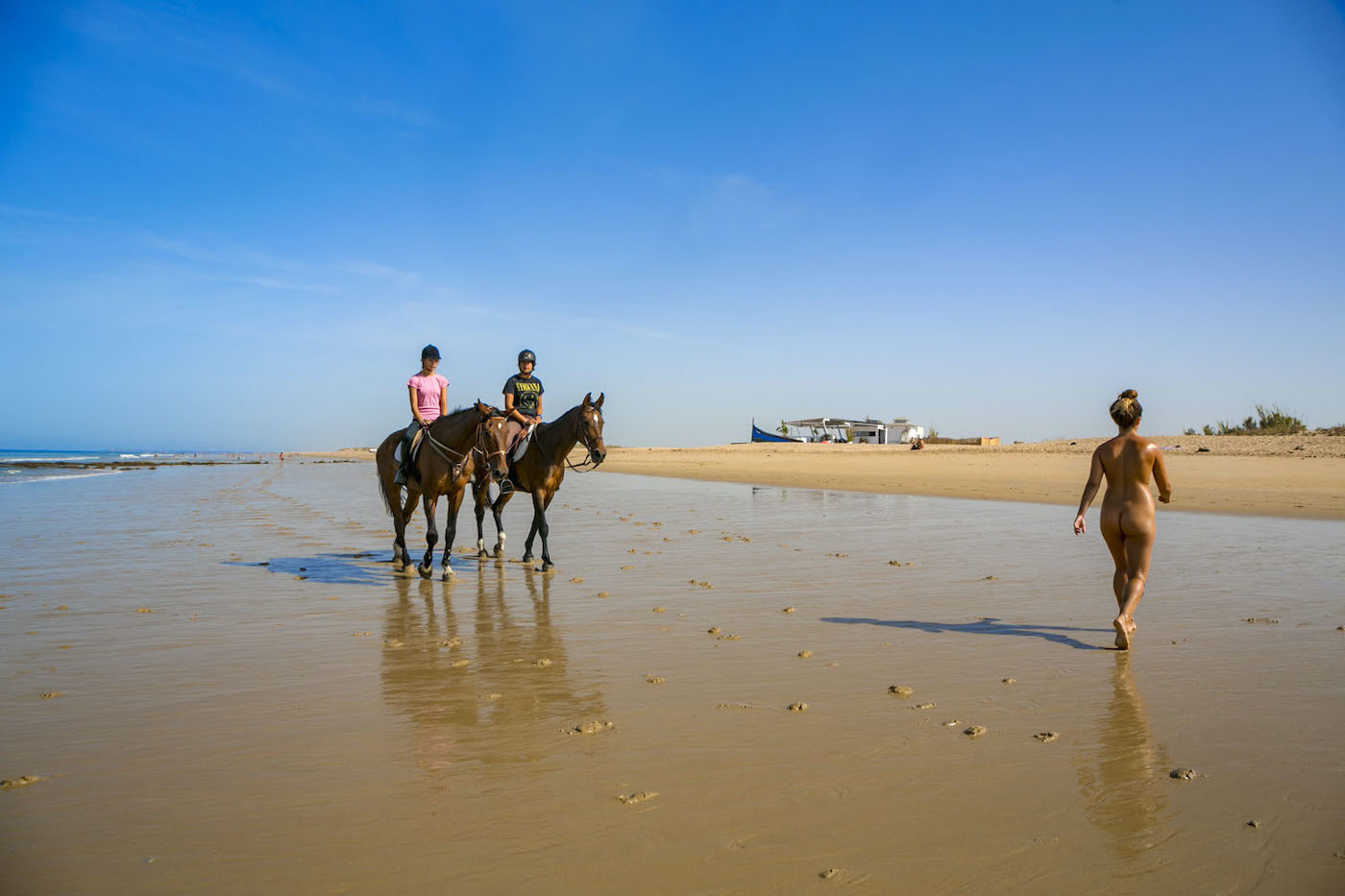 Continuando hacia el oeste, encontramos la playa de la Mangueta, nudista como otras tantas, que se prolonga con la del El Palmar. En sus 8 km de extensión ininterrumpida no existen grandes hoteles o edificios. Sus accesos discurren entre huertos, ganado y casitas de campo, muchas de ellas en alquiler. La preservación y simbiosis entre playa y entorno rural es perfecta, con los solares de primera línea ocupados de restaurantes, bares, tienditas y mercadillos. Solo con cruzar la carretera, pasarelas salvan el ecosistema de dunas para situarnos frente a un mar, intenso y bellísimo. Desde aquí, los pueblos se van sucediendo: Conil, Chiclana, Sancti Petri… y crecen con más ofertas, a medida que se acerca Cádiz. Dispuestos a descubrirlos en otra ocasión, volvemos a Zahara para seguir el viaje dirección este. Como los atunes cuando regresan.