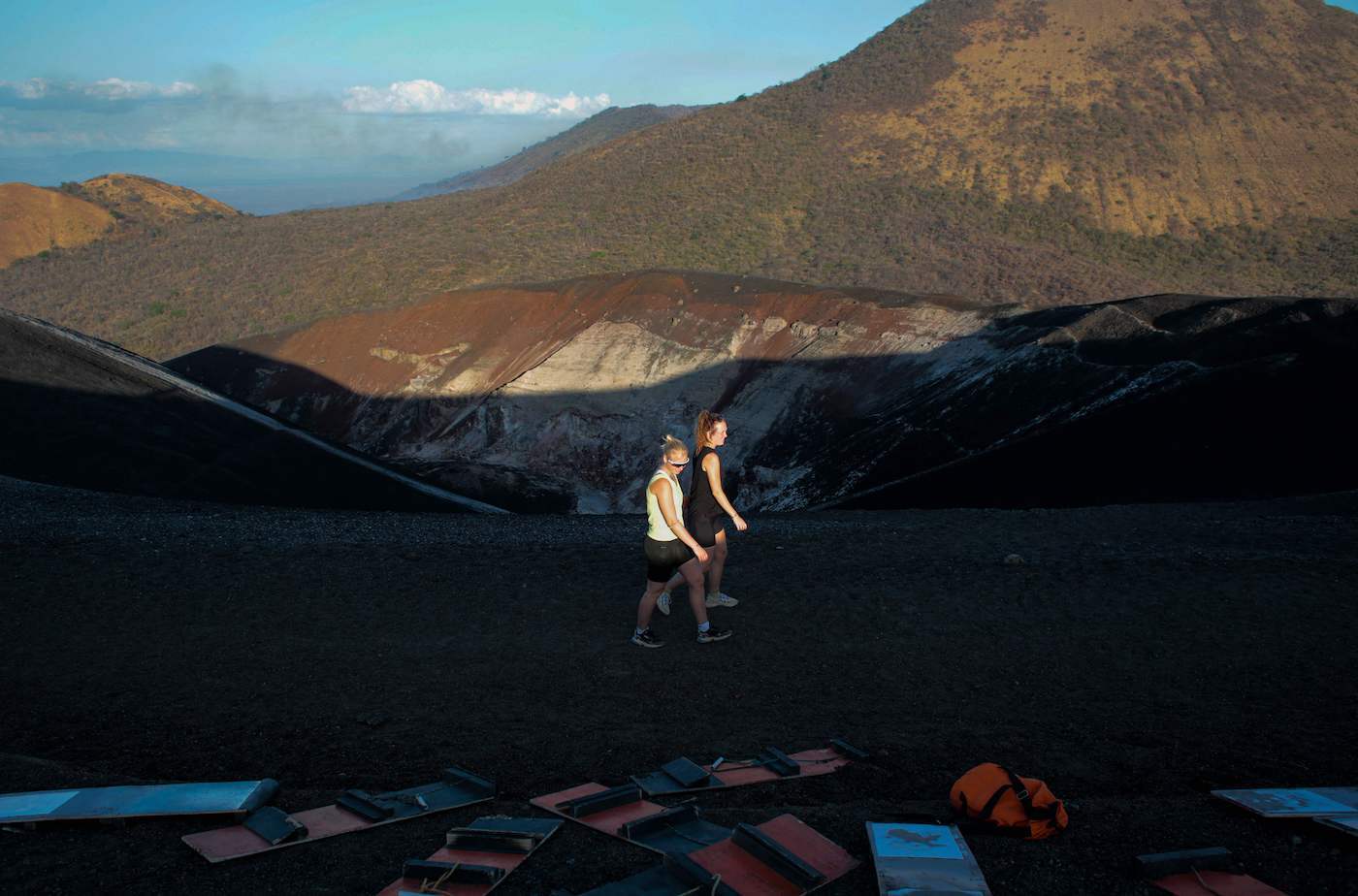 Cada vez más turistas suben hasta la cumbre del volcán Cerro Negro con un único propósito: deslizarse a toda velocidad por las faldas de este macizo nicaragüense montados en una tabla. Es una práctica conocida como “volcano boarding”. Pura adrenalina, aseguran.