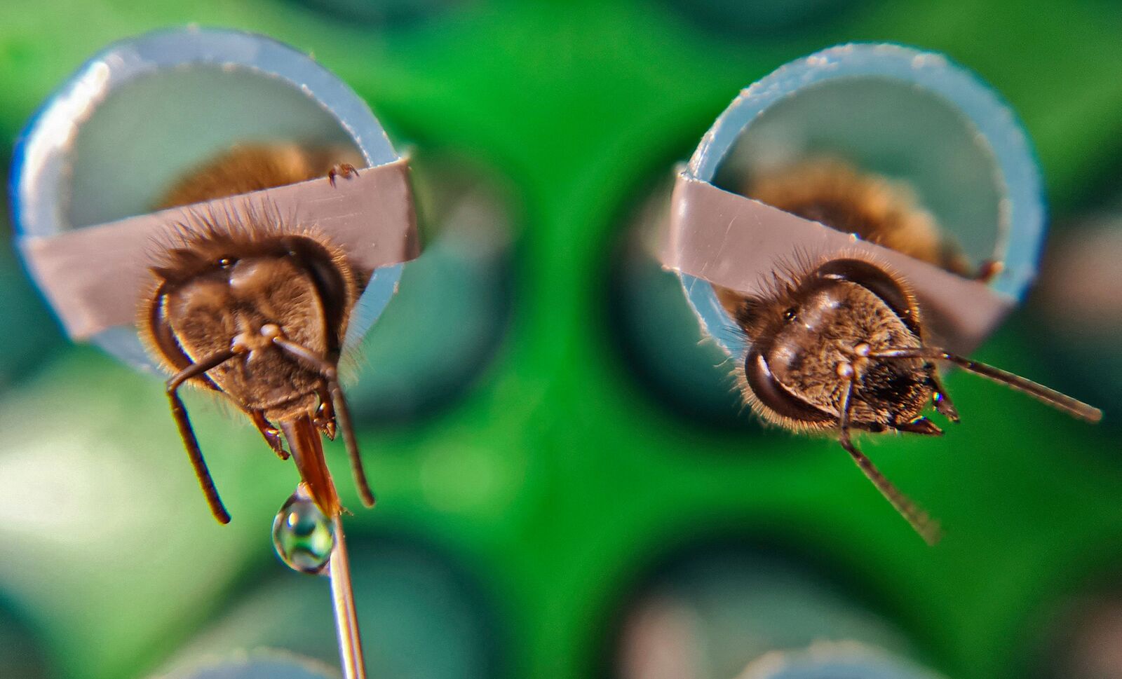 Alérgico a las picaduras, el científico manipula uno de los insectos con sumo cuidado. Atrapada en un tubo de ensayo, una abeja extiende la lengua hasta alcanzar una gotita azucarada como parte de un experimento para conocer más sobre el funcionamiento de su memoria. «Yo le presento a la abeja un olor, ella lo reconoce y yo le doy una recompensa con azúcar (...) ¿Cómo sabemos que aprendió? Porque ella extiende la lengua únicamente con el olor», muestra la investigadora Lina García en el laboratorio. Para Riveros su descubrimiento «no es una solución que invite al uso indiscriminado de pesticidas». «Nuestra intención es proteger a las abejas», insiste.