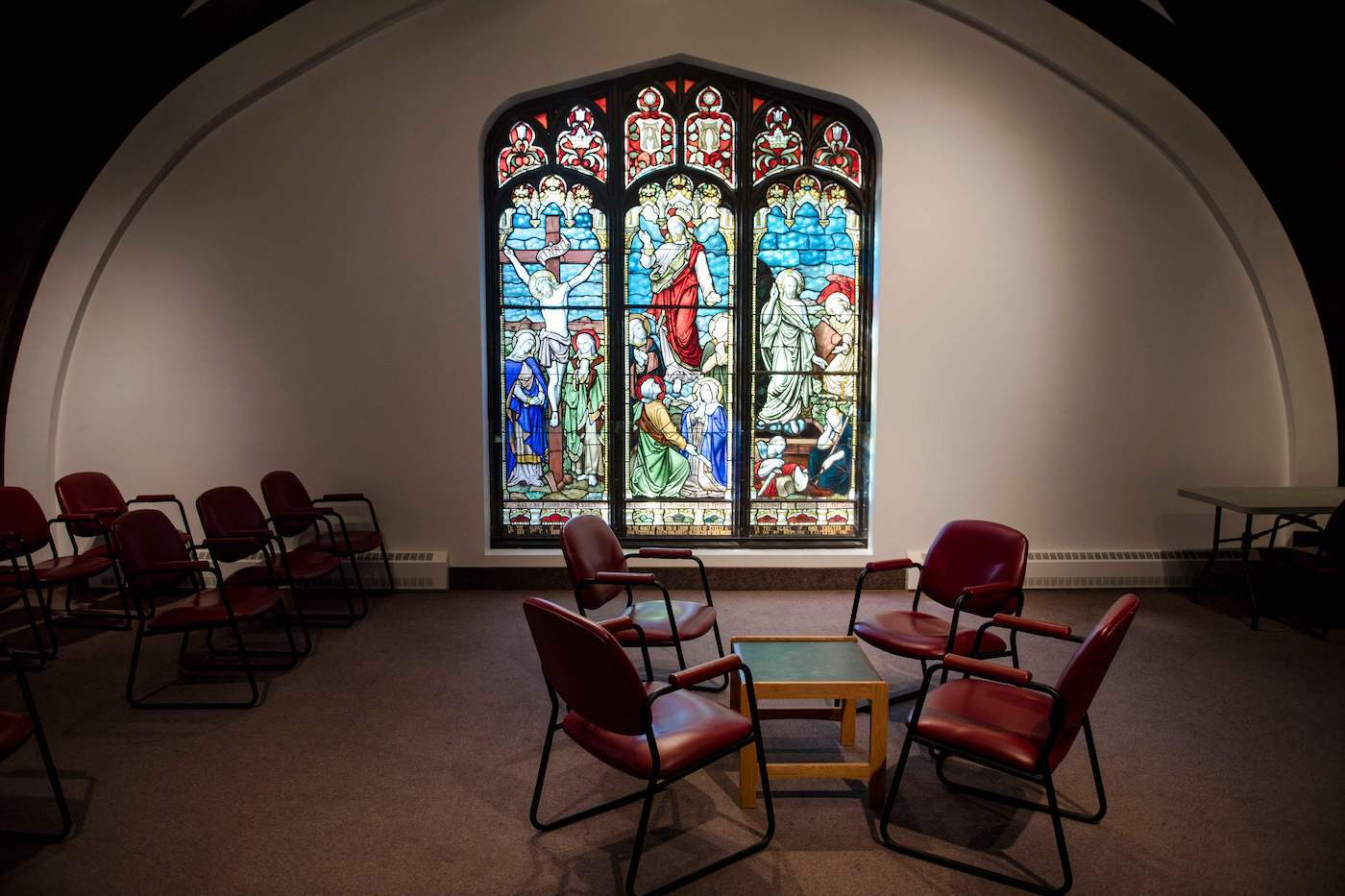 Este establecimiento, destinado a la población más vulnerable del barrio, sirve más de 300 comidas diarias a bajo precio y ofrece formación profesional a personas desempleadas, que se pasean vitrales multicolores y antiguos confesionarios de madera.