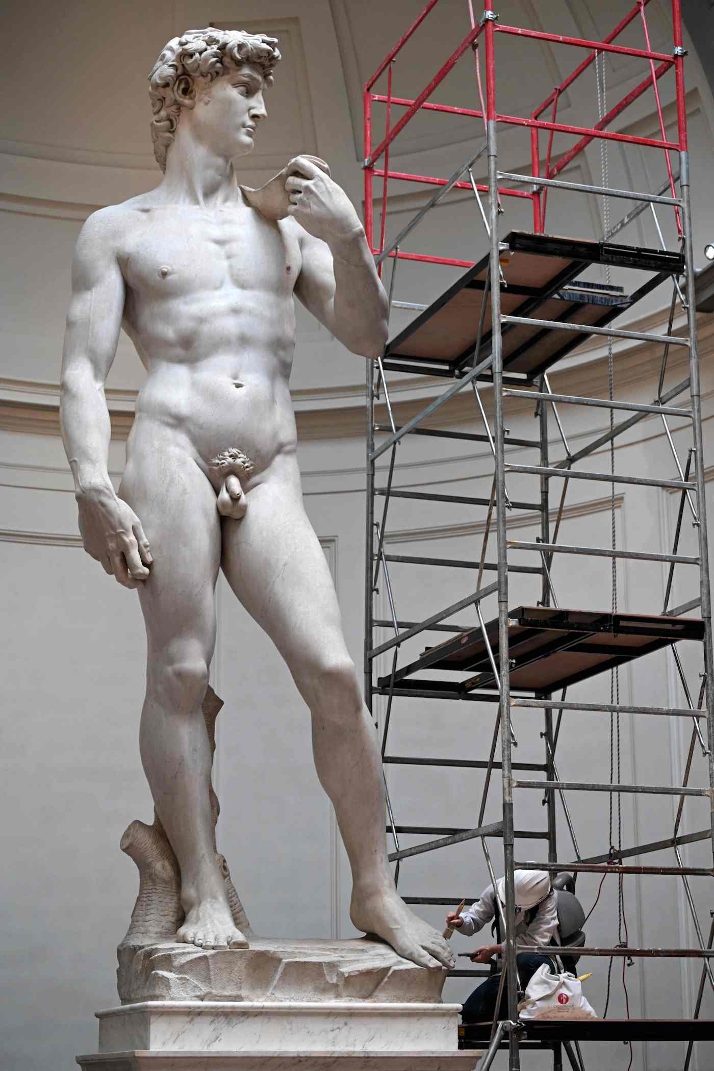 Cada dos meses, el David, que Miguel Ángel terminó cuando tenía 29 años, en 1504, se presta con gusto a que lo limpien minuciosamente en la Galería de la Academia de Florencia, en el centro de Italia, que preside desde hace más de 150 años.