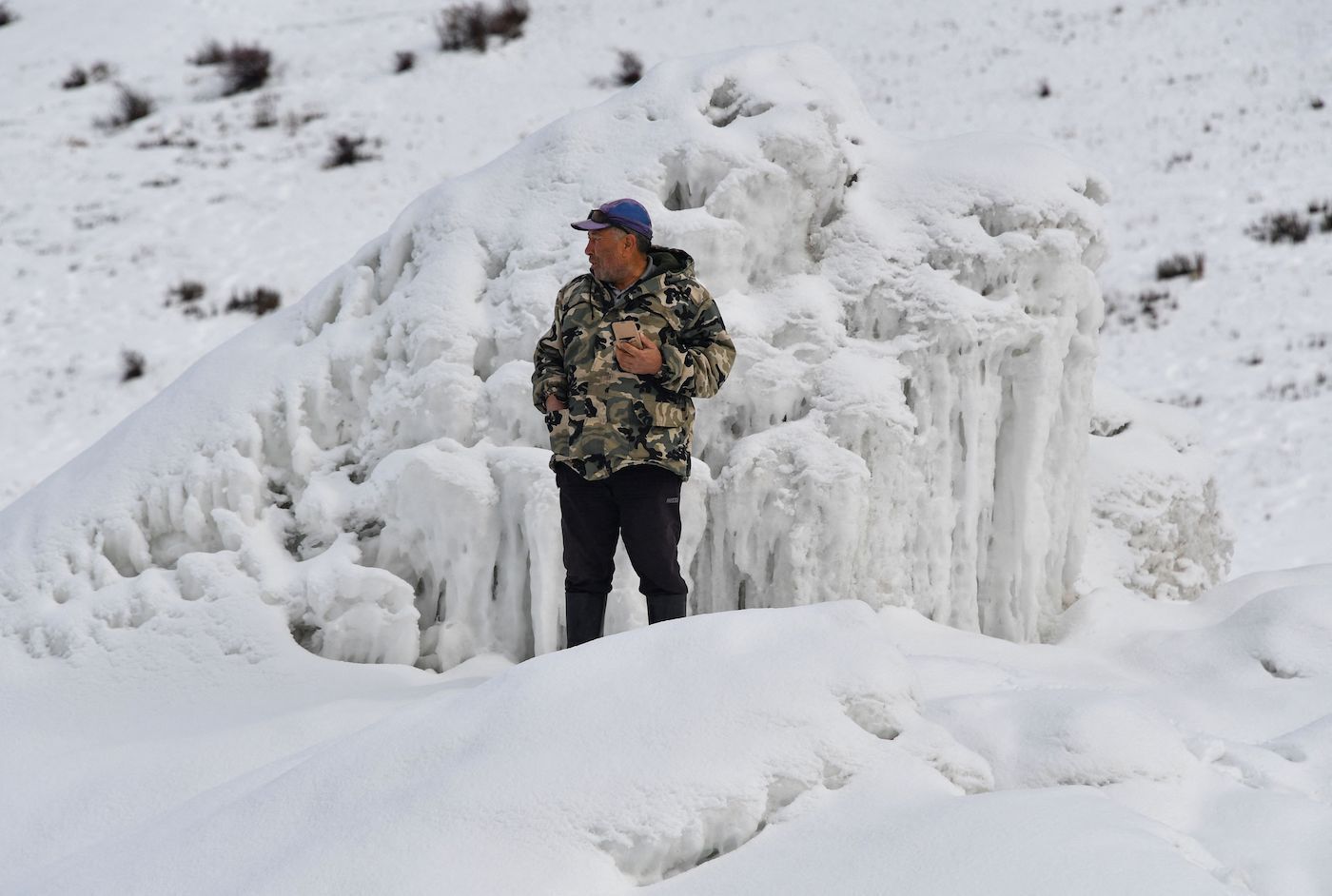 Erkinbek Kaldanov, preocupado por sus ovejas tras los anormales picos de calor del año pasado, confía en que este año será menos difícil porque «cuando el glaciar artificial se funda, habrá agua para dar de beber al ganado y regar las tierras de Syn-Tash», su distrito. A sus pies se levanta un montículo de hielo de una veintena de metros de largo y cinco de alto. En el momento más duro del invierno, su altura llegaba a 12 metros.