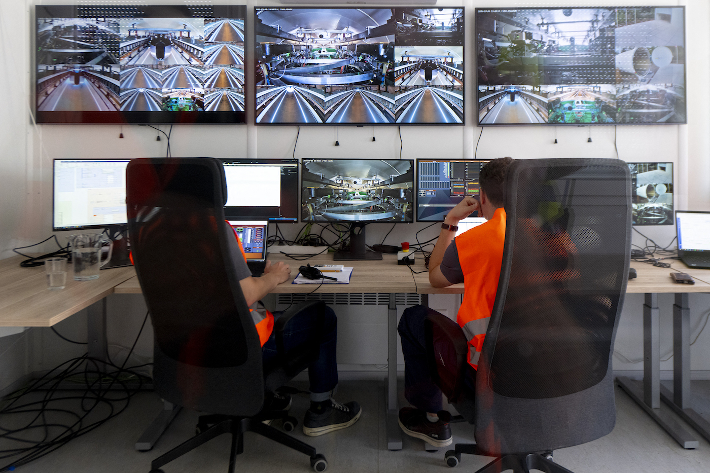 En el interior de un túnel blanco de 420 metros de longitud en el Centro Europeo de Hyperloop, el tren cubierto de rayas negras y grises empieza a levitar antes de ponerse en marcha siguiendo las instrucciones del centro de control. Por ahora, su velocidad es lenta, de 30 km/h, pero sus operadores confían en llegar a los 100 km/h antes de final de año.