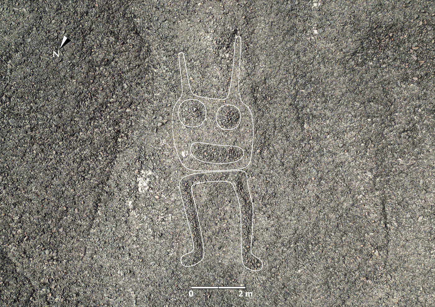 Entre las figuras descubiertas hay «geoglifos gigantes de tipo lineal» que representan predominantemente animales silvestres, pero también hay «pequeños» en relieve con motivos relacionados a la actividad humana, que incluyen humanos y camélidos domesticados.