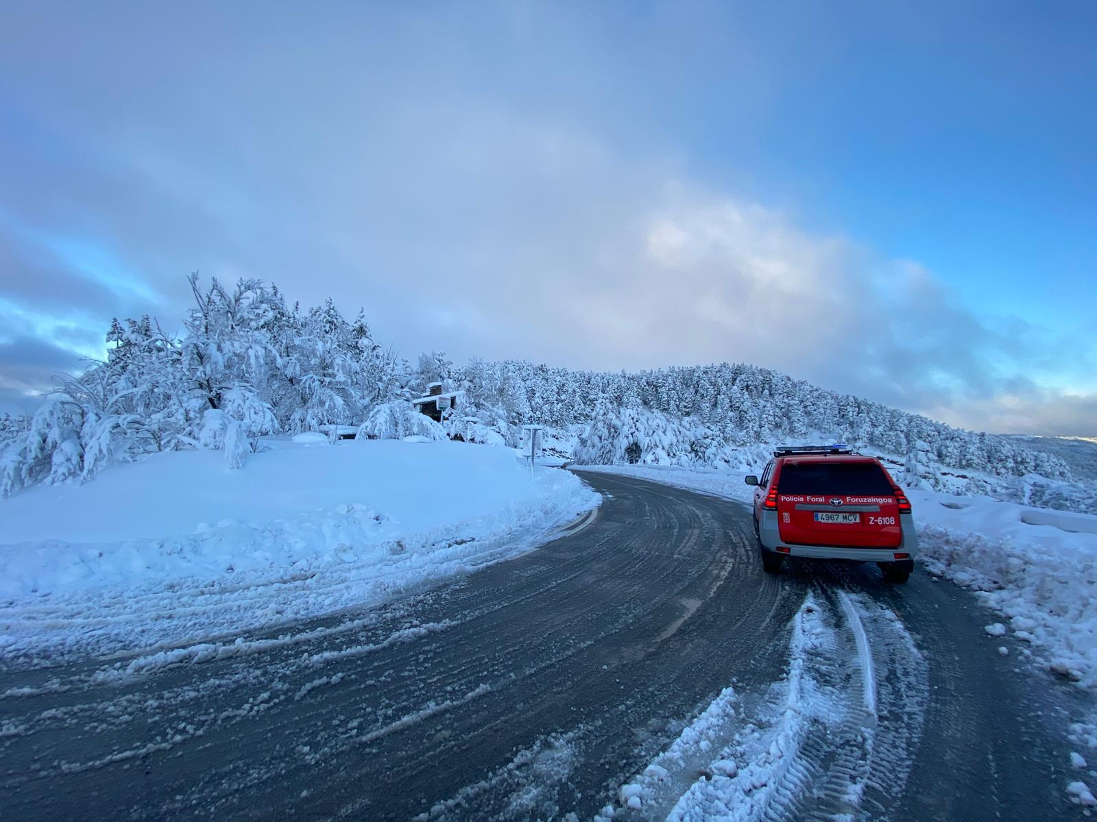 A modo de prueba, NAIZ ha utilizado un par de imágenes subidas a la red X de Policía Foral el martes 10 de diciembre. La primera y más sencilla es una patrulla por un paisaje nevado. La segunda tiene una pequeña trampa.
