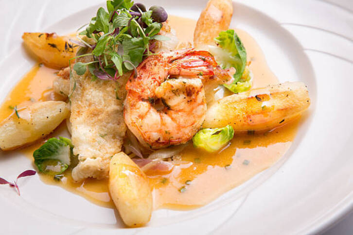 5. Meter la merluza y los langostinos en la salsa y cocinar un par de minutos por cada lado.