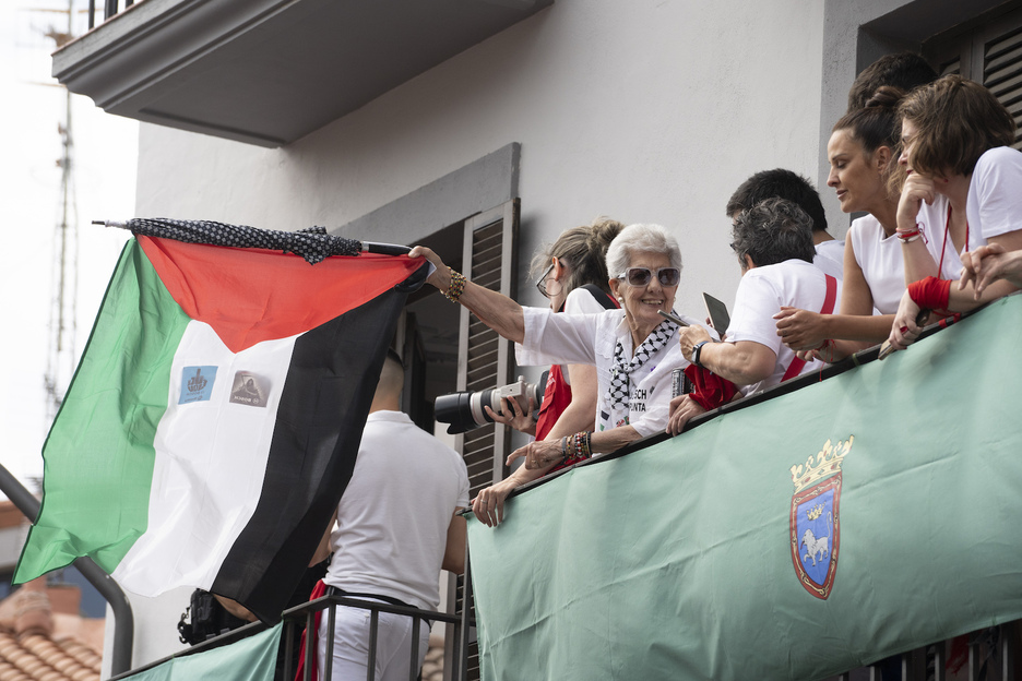 «Me están llegando mensajes de Gaza, desde Hebrón, de los palestinos de la Diáspora, de judíos antisionistas de EEUU. Lo han visto en todas partes», comenta Lidón Soriano, una de las encargadas de lanzar el txupinazo. La misma que, con voz rota, se saltó el protocolo gritando: «Stop Genocide! Free Palestine!».