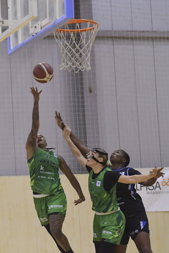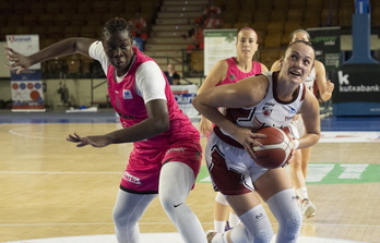 Betty Mununga, en imagen en el derbi frente a Ardoi, ha tenido un susto en el hombro.