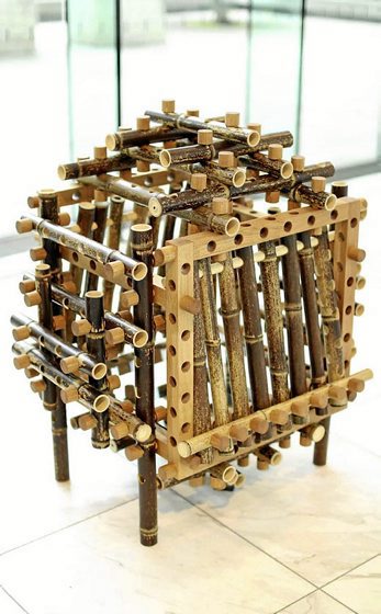 El diseñador japonés Shigeki Yamamoto continúa con su serie Play Gabinet combinando esta vez bambú y roble. Play bamboo gabinet mantiene la referencia a los recuerdos de la infancia de jugar con bloques de construcción, pero esta vez se centra en usar bambú tigre (taketora) debido a su patrón de color. Los dos gabinetes no solo simbolizan las influencias japonesas y alemanas de Yamamoto, sino que también resaltan la belleza única del roble y el bambú al ponerlos en contraste directo uno al lado del otro. El diseño ofrece una pieza de mobiliario de aspecto único, que parece haber crecido naturalmente de elementos individuales en una estructura compleja pero armoniosa, que, en palabras de Yamamoto, «representa nuestro instinto creativo inherente».www.shigekiyamamoto.com