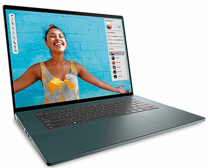 En la nueva gama Inspiron de la firma norteamericana destaca este modelo por su gran panel ConfortView Plus de 16 pulgadas con resolución 3K y 300 nits de brillo máximo. Con un diseño sobrio en color verde oscuro, este potente portátil integra además los procesadores Intel Core serie H de 12ª generación con sus gráficos Iris Xe integrados, hasta 32 GB de memoria RAM DDR5, un máximo de 2 TB de almacenamiento SSD y las soluciones gráficas NVIDIA GeForce RTX 3050 o 3060 en sus modelos más avanzados. Esta interesante configuración se acompaña además de una completa conectividad que incluye un puerto USB-C y dos USB-A, WiFi 6E, una salida HDMI 2.0, Bluetooth 5.2, un lector de tarjetas SD/microSD, una webcam FullHD con micrófonos duales y un sistema de cuatro altavoces Dolby Atmos; todo con una gran batería de 54 o 64 Whr.
