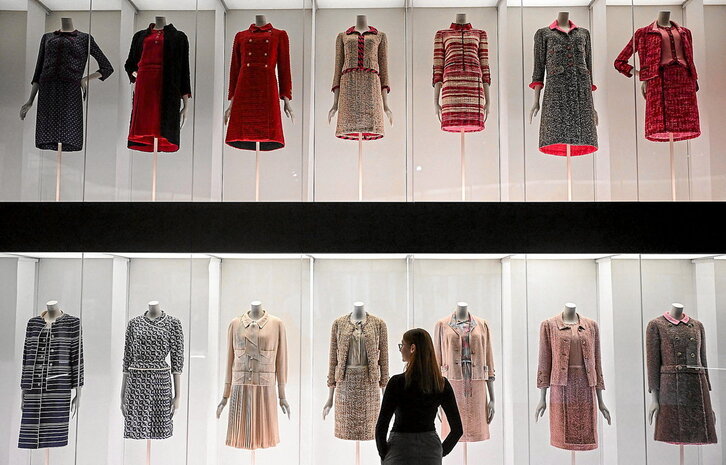 Una trabajadora del Victoria and Albert Museum de Londres observa algunos de los doscientos vestidos y conjuntos exhibidos en la exposición “Gabrielle Chanel. Manifiesto de moda”, que abarca nada menos que 60 años de la trayectoria de la diseñadora francesa, y se podrá ver hasta el 25 de febrero de 2024. Considerada una de las grandes modistas de la historia, Coco Chanel apostó por una moda cómoda, elegante pero sencilla, con prendas con las que la mujer pudiera moverse lejos de la opulencia de la época. Pero sobre todo rescató el negro para siempre, un color entonces destinado al luto y a las prendas de criadas y desfavorecidos y que, un siglo después, es uno de los tonos más recurrentes. En esta retrospectiva no podía faltar su icónico traje de tweed, hasta 54 de ellos se exponen en una sala de dos plantas. Otras de sus creaciones también han sobrevivido a la maestra: el bolso acolchado, el perfume Chanel N°5, o sus «vestiditos negros», de plena actualidad. Controvertida, Chanel tuvo una vida de película que, por supuesto, ya ha sido llevada al cine. Nació pobre, luego llegó a tener más de 3.500 empleados, vistió a las actrices de Hollywood, a las aristócratas y millonarias pero también democratizó la moda. Además, colaboró con la Alemania nazi durante la Segunda Guerra Mundial aunque coincidiendo con la muestra se ha confirmado que también llegó a ser agente ocasional en la Resistencia, según documentos revelados por el Museo V&A.