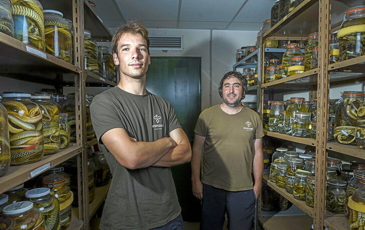 Ion Garin Barrio eta Iñaki Romero Iraola biologoak zain ditugu Donostiako Zorroagagaina kaleko eraikin zabalean, Aranzadiren egoitza nagusian. Bertan, ezagunagoak ditugun antropologia, arkeologia, mikologia edo astronomiarekin batera, badute herpetologia saila ere, anfibio, narrasti eta habitaten kontserbazioa zaintzen duena.