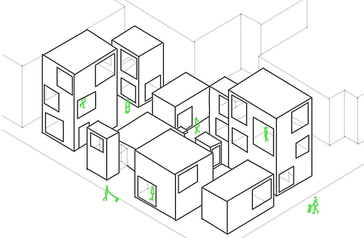 Proiektuak etxebizitza tradizionalaren irakurketa berria proposatzen du. Funtzio guztiak bolumen bakar batean bildu beharrean, espazio domestikoa unitate autonomoetan banatzen da, horien arteko harremana patioen eta lorategien bitartez gauzatuz. Hamar bolumen independente baino gehiago sakabanatzen dira 290 metro karratuko eremuan. Hiriburuko trinkotasunaren aurrean, porotsua da. Esan daiteke erabakia inguruneko morfologia errespetatzetik datorrela, eraikin txikien errepikakortasuna eta pasabide estuen eskala kontsideratzetik. Alabaina, horrez gain, zatiketak askatasuna ematen dio bezeroari multzoaren zein zati erabili bizileku propio gisa eta zein zuzendu alokairurako erabakitzean. Estantzien antolaketa ez dago zehatz-mehatz finkatuta, eta horregatik aukera dago espazioen erabilera beharren, urtaroen edota bizilagun kopuruaren arabera egokitzeko. Irakurri ahal izan dudanez, denbora tarte luze batean behintzat, jabea lau solairuko bolumenean bizi izan omen da, gainerako bolumenak apartamentu solte gisa alokatuz. Alabaina, multzoa bizitegi bakar bat izatera itzul daiteke diseinuak ematen dion malgutasunari esker.