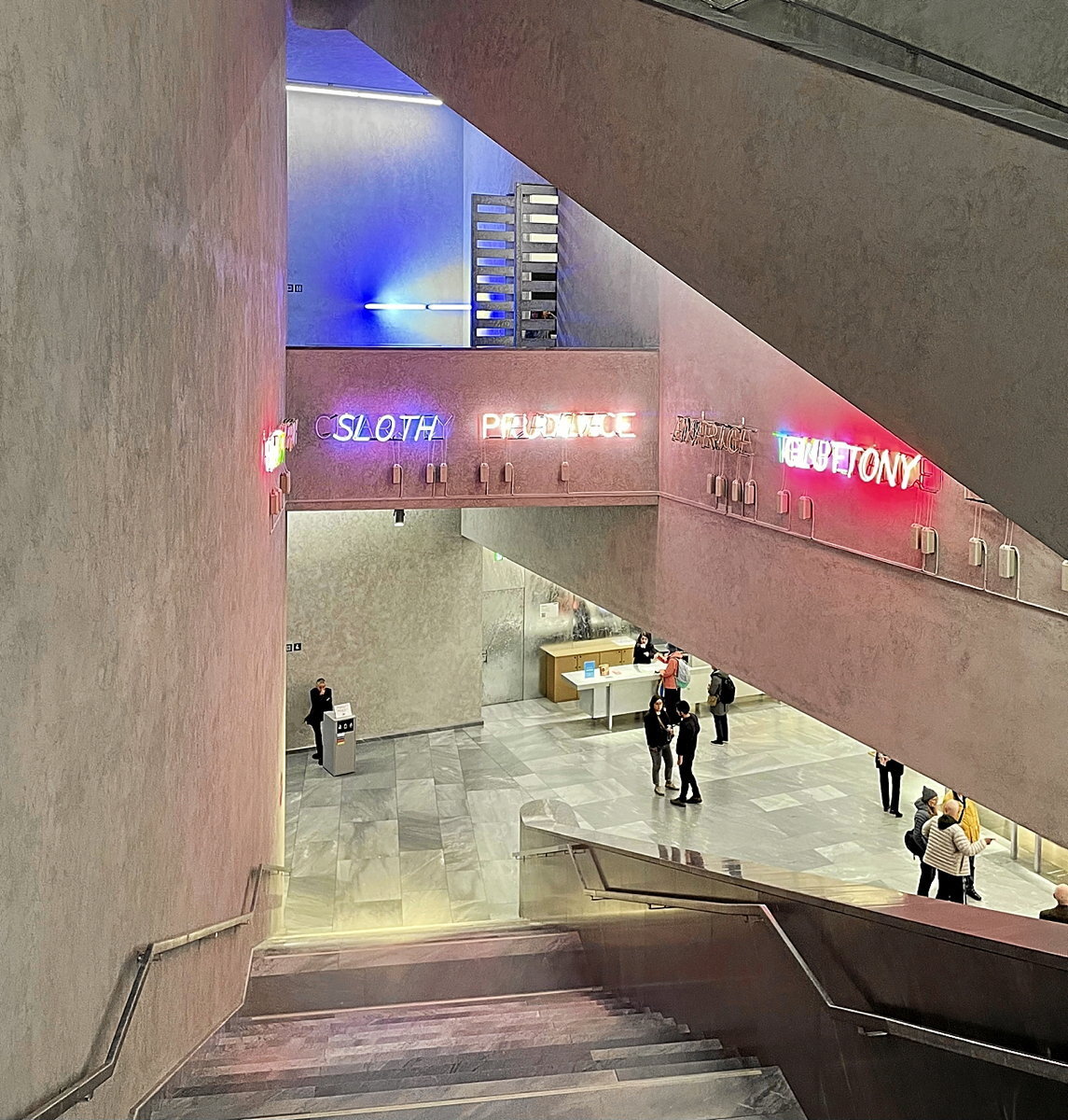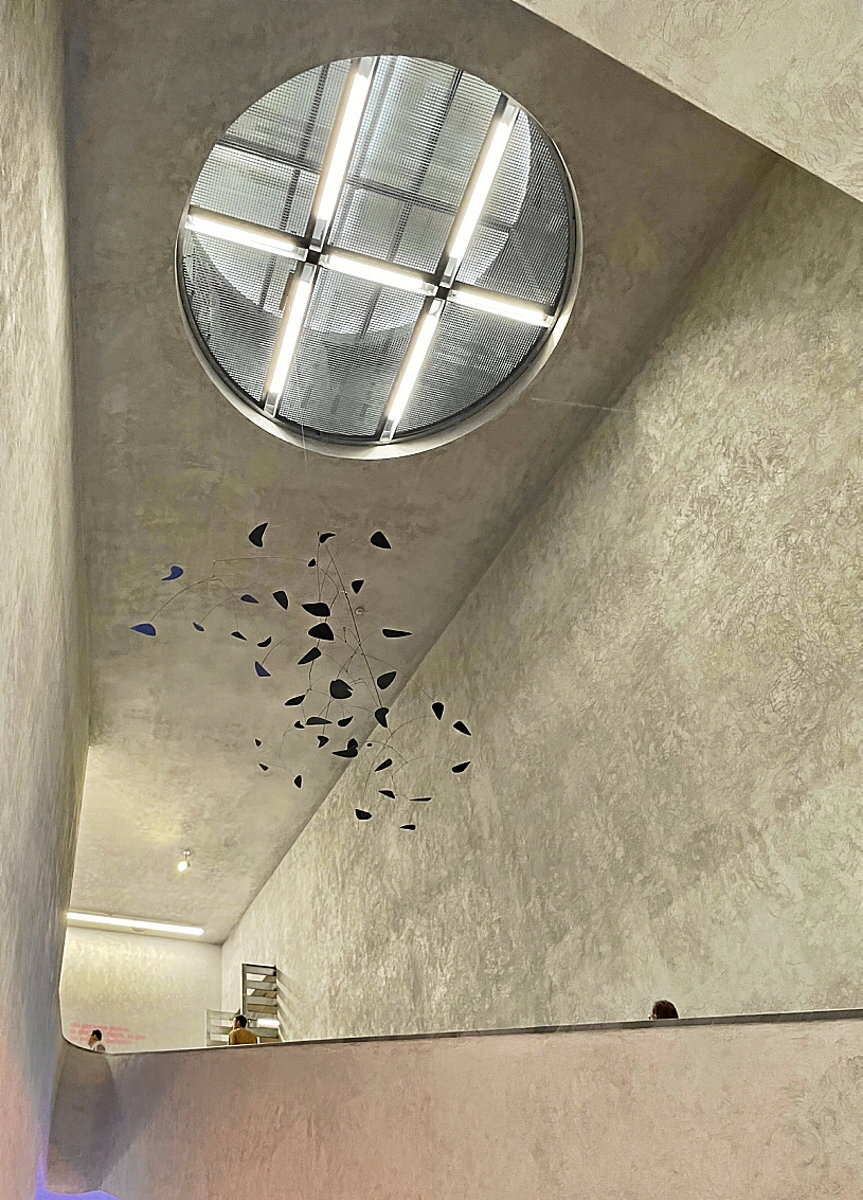 Barnealdean, eskailera monumentala esposizio espazioak banatzen dituen elementua da, eta irudi aske eta adierazkorra marrazten du argi-zulo zirkular batez argiztaturiko espazioan. Erakusketa gelak tamaina desberdinetakoak dira, mota desberdinetako instalazioak hartzeko, eta, batez ere, eraikin zaharrekoak baino handiagoak eta malguagoak dira, garaiko eskakizunetara moldatu ahal izateko. Dena den, museo espazioak ulertzeko ideia klasikoak hautematen dira, hala nola bareak, soilak, proportzionalak; estetika berriko akaberak izan arren, artea agertokiko arretaren jabe da.