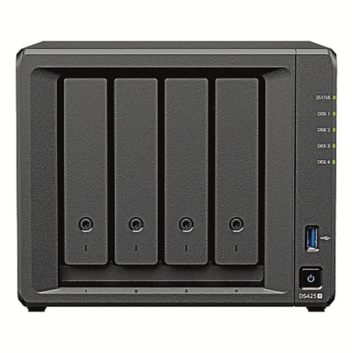 El Synology DS425+ es un NAS que centraliza y protege los archivos que guardes para que los tengas siempre a mano. Permite backup automático, acceso remoto y uso compartido. Con 4 bahías, procesador Intel y puerto 2.5GbE, mejora la velocidad y eficiencia en la gestión de datos.