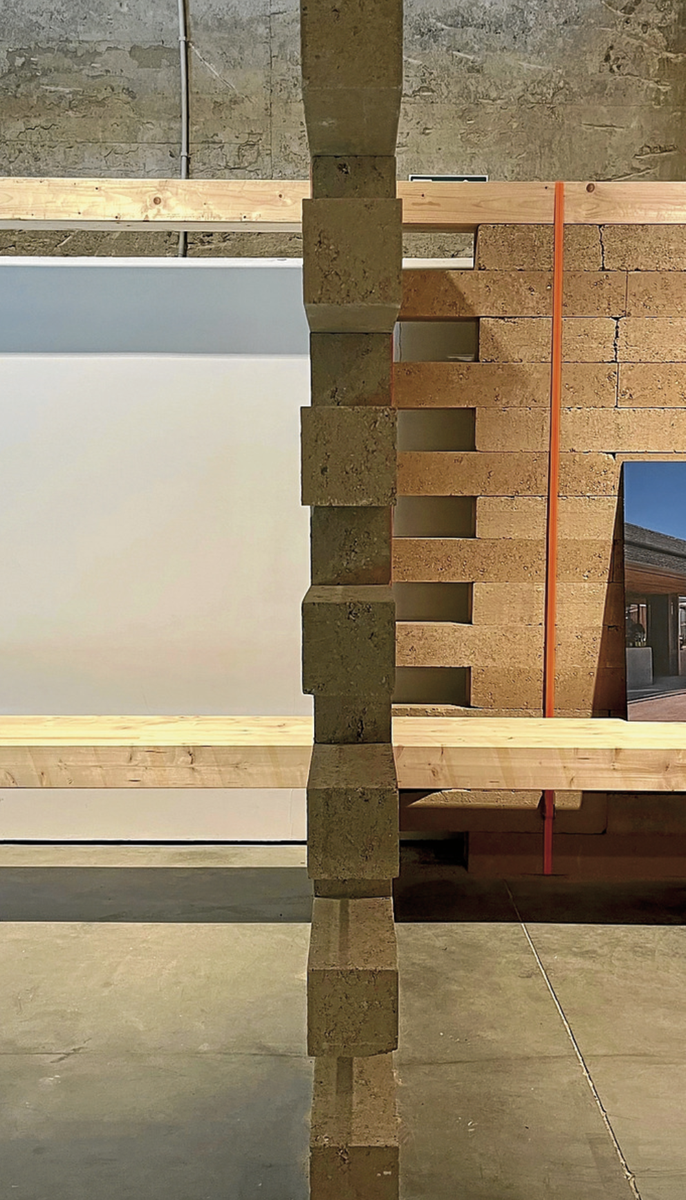 Se trata de un diseño marcado por la coherencia entre discurso y construcción, entre contenido y soporte. La tierra compactada recuerda que la obra construida puede apoyarse en lo más elemental, en aquello que está disponible en el lugar. El hecho de que todo pueda desmontarse sin dejar huella, refuerza la idea de una arquitectura entendida no como permanencia absoluta, sino como desplazamiento, préstamo y devolución.