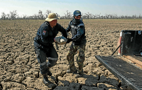 Ur faltak lehortu eta gogortu egin du lokatza eta bertan mugitu ezinda geratu dira ehunka kaiman, beste hainbat animaliarekin batera. Paraguaiko Chaco eremuan boluntarioak eta suhiltzaileak lanean ari dira kaimanak banan-banan atera eta leku hezeren batera eramateko, guztiak bertan hil ez daitezen. Argentinako eta Boliviako mugetatik gertu dauden lur hauetan bizi duten lehortea “La Niña” fenomenoari egotzi diote ikertzaileek; alta, beste batzuek, batez ere herritarrek eta boluntarioek, diotenez, sikatea Pilcomayo ibaia ondo bideratu ez izanak eragin du. Bata ala bestea izan, bizileku izan dutena «hiltzeko leku» bilakatu zaie orain animalia hauei.