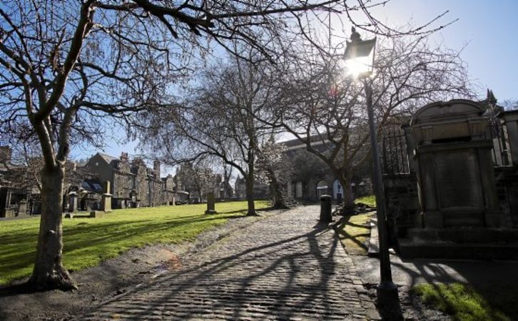 Edinburgoko Alde Zaharrean aurkitzen diren beste bi kokapen interesgarri dira Greyfriars Kirk eta West Bow (Victoria Street izenez ezagunagoa). Azken hau Weir komandantearen eta haren arrebaren etxea da, zeinak fededunak zirela aldarrikatzen zuten arren sorginkeria eta magia beltza erabili zutela aitortu eta heriotzara kondenatuak izan ziren 1670. urtean. “Dead Souls” nobelaren hitzaurrean egiten du Rankinek Weir komandantearen aipamena. Handik gertu kokatzen da Greyfriars Kirk, “Bobby” zakurraren hilerria bezala ezagunagoa dena, zeinak hamalau urte egin zituen bere jabearen heriotza ostean haren hilkutxaren ondoan, esperoan balitz bezala, bera ere heriotzak eraman zuen arte. Hilerriaren inguruko gogoeta egiten du Rebusek “The Falls” lanean.