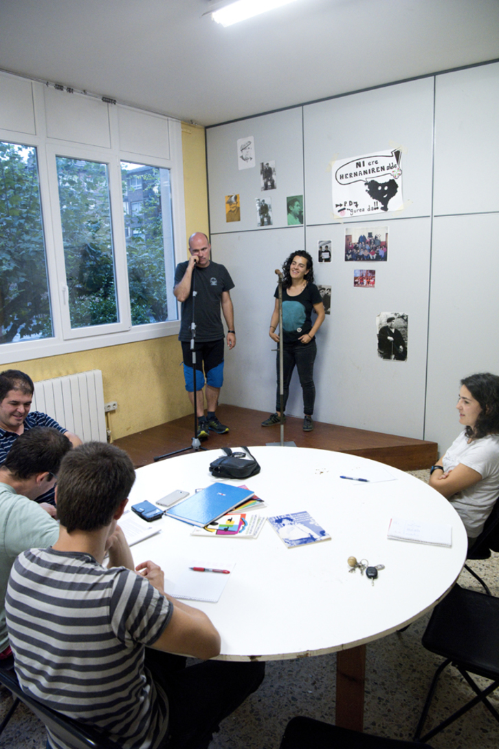 Bitartean, Agin Laburu liburuxka batekin dabil lardaskan. Garai bateko Bizkaiko Txapelketetako gaitegi bat da. Entrenatzeko gaiak hortik aterako dituzte gaur. Aginek ederki pasatu du gairik aldrebesenak topatzen. Oier Iurramendik orri txuria hartu du errimak apuntatzeko. Bertsolariari gustatzen zaio entrenamenduan erabili dituen errimak errepasatzea eta lagunekin zerrenda hori zabaltzea. Eli Pagola ere gerturatu da. Gaur bi Nereak falta dira bertso eskolan, Elustondo eta Ibarzabal. Bata legazpiarra eta bestea markinarra diren arren, Hernani inguruan dabiltza orain lanean eta aurtengo txapelketan bertako bertso eskolara hurbiltzen ari dira. «Polita da gertatzen ari dena. Pozgarria da Nerea Elustondo eta Nerea Ibarzabal hona gerturatu izana. Guretzat ja etxekoak dira. Gainera, gure bertso eskolan beti gertatu izan da horrela, Hernanitik kanpoko jendea etorri ahala sartu da bertso eskolara eta pozgarria izan da. Leku integratzailea izan da beti», esan du Maialen Lujanbiok.