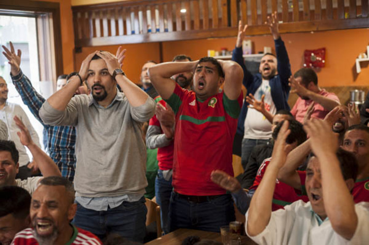 Gola ospatzeko prest zeuden zale marokoarrak protestaka, Iranen eta Marokoren arteko partidan, 19. minutuan, Mehdi Benatiaren azken jaurtiketa Beiravand atezain irandarrak gelditu duelako.