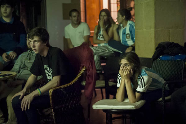 Argentinako selekzioaren jarraitzaileak etsita, Kroaziaren lehen gola ikusita. Palace taberna toki neutroa da eta argentinarrak direnak eta ez direnak nahasten dira futbola ikusteko.