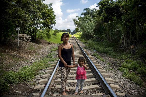 Gauero ia 300 pertsonak zeharkatzen dute Las Patronas herria. Eskuinean, goitik behera, jende talde bat “La Bestia” izeneko trenera igo nahian. Asmo horixe du Sandrak. Etxean, Hondurasen, bi seme utzi eta AEBetarako bidea hartu du alaba txikiarekin. Lana bazuen, baina ez zioten familia mantetzeko adinako soldatarik ematen. Soinean gauza gutxi hartuta abiatu da, baina ez zuen bere arrosarioa ahaztu. Hori da, bere esanetan, duen gauzarik preziatuena.