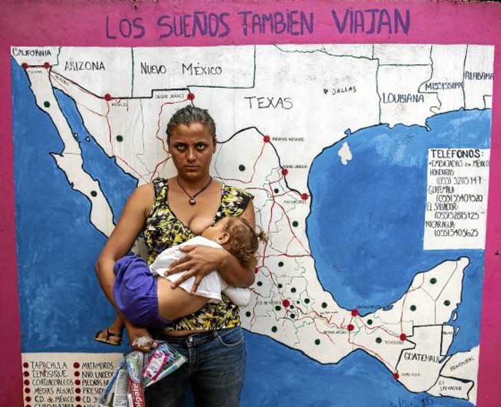 Veracruzen kokatutako Las Patronas aterpean dago Paola. Bere haurrari titia ematen ari da sortzez Guatemalakoa den emakumea, atzean atzerritarrei bideratutako informazio gune bat duela.