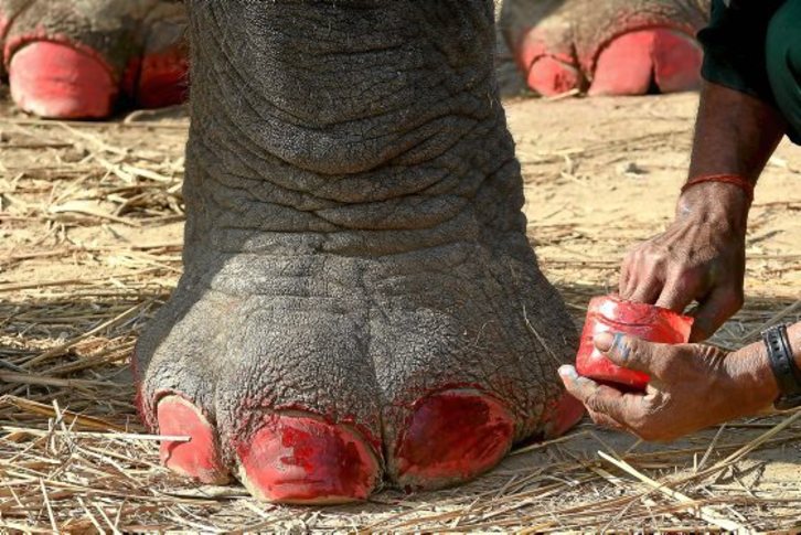 Lo que están viendo en la imagen que precede a estas líneas son un elefante y su cuidador acicalando al animal. Se trata de una fotografía tomada durante las horas previas al Festival de Elefantes que se celebra en Sauhara, cerca de Katmandú, Nepal. Estas grandes bestias son engalandas por los mahout con pinturas de diferentes colores, cual concurso de belleza animalista. Los elefantes se preparan a todo detalle, incluso con una mano de pintura en sus pezuñas para que sus pies luzcan con los mismos tonos alegres y llamativos con los que se pintan también sus cabezas y cuerpos.
