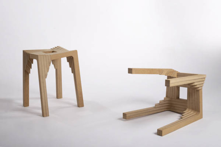 Desde sus escaleras sin principio ni fin a sus juegos de luz, pasando por meros puzles visuales, la obra de M.C Escher es uno de los pilares del arte moderno. La han calificado como «extraña, personalísima, inmediatamente reconocible como la de grandes artistas de la talla de El Bosco, Picasso o Dalí, pero también accesible, pop, fascinante sin exigencias de profundos conocimientos de arte o diseño. Los acertijos visuales de Escher encierran su propia respuesta y esta se encuentra bien a la vista, y por eso es tan satisfactorio contemplar su obra. La razón: que enuncia el enigma al mismo tiempo que susurra la solución». Inspirándose en el legado de este imaginauta holandés, Albert Puig y Benjamin Migliore han diseñado un taburete que evoca el “ciclo perpetuo” de un material entrelazado en sí mismo. Parecido a las imágenes de Escher sin principio ni fin, Grada está hecho de múltiples cortes que generan volúmenes tridimensionales escalonados con una sensación continua de movimiento. Desde la parte superior, las cuatro patas del taburete parecen estar entrelazadas entre sí, lo que crea un diseño escultórico cíclico, da forma al objeto y además consigue un asiento ergonómico elegante y conceptual. www.puigmigliore.com
