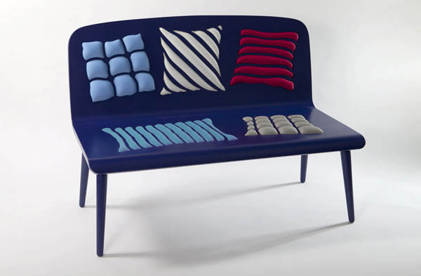 ¿Banco o sofá? Lleno de color y con una personalidad fantasiosa, Poppins, de Alessandra Baldereschi, juega con la idea que tenemos de los cojines y los asientos para ofrecer un diseño híbrido y divertido gracias al curioso uso con el que la italiana emplea los contrastes de color y las formas geométricas. Inspirado en las ilusiones 3D de los años sesenta Op Art, Poppins está hecho de madera lacada y presenta un acolchado tapizado en grupos de diferentes colores y formas. Si bien puede parecer que el acolchado está agregado sobre la superficie del banco, de hecho está cosido en la madera sobresaliendo de la superficie plana. El resultado, un print acolchado que proporciona comodidad y un toque de color y diversión gráfica que alegra cualquier sala de estar. http://www.alessandrabaldereschi.com