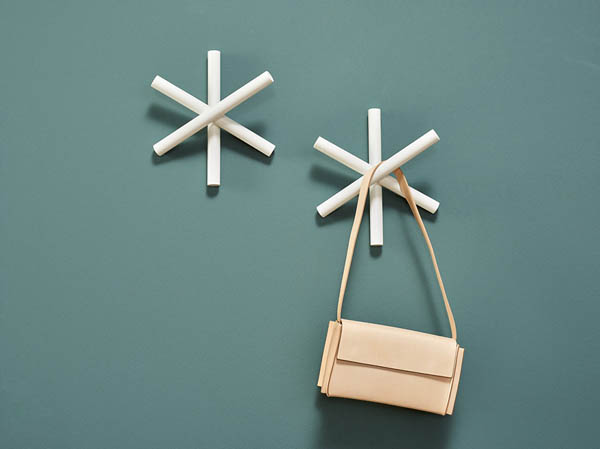 Diseñado por Romin Heide y Hanna Litwin del estudio de diseño Büro Famos, Logs es un perchero simple y lúdico que agrupa varias barras redondas de madera en una misma pieza, imitando la apariencia de las pilas de troncos con las que encendemos una hoguera. Fabricado por la empresa checa TON, el perchero emplea recortes de madera de haya y roble en distintos tonos. La forma, que también recuerda a una estrella, funciona tanto en solitario como para crear prácticas combinaciones de pared. El packaging es de cartón reciclado y está producido en un taller que emplea personas con discapacidades, respaldando el enfoque de Heide y Litwin hacia la sostenibilidad y el pensamiento ecológico. www.on.eu