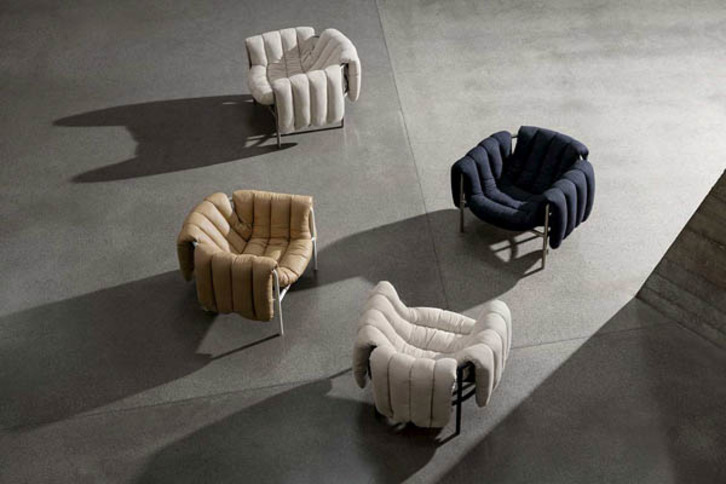 Si comodidad y estética moderna son dos imprescindibles a la hora de elegir una pieza de mobiliario, te va a encantar Puffy. Diseñada por Hem y Faye Toogood, «la idea detrás de Puffy Seating Collection es enfatizar las dos ideas casi contradictorias en juego en los muebles», explican. Para ello, el equipo ha decidido dejar a la vista la estructura tubular del sillón debajo del tapizado extraíble. Como guiño a esa idea de comodidad, la parte acolchada de la silla que se asemeja a un edredón ultra acogedor que invita a arrebujarse. Respecto al proceso de diseño de la pieza, Hem y Fay hacen hincapié en dos conceptos: «Primero, estabilidad y resistencia, destacadas al dejar la estructura de acero inoxidable a la vista; y en segundo lugar, comodidad y tranquilidad, gracias al relleno de tapizado hinchado. Así conseguimos transmitir esa idea de durabilidad y calidez». La colección completa incluirá una gama de sillas y taburetes táctiles que ofrecen una nueva versión de los muebles con estructura de acero, y están disponibles en tres colores de tapizado y en tres acabados de estructura que se pueden mezclar y combinar. www.fayetoogood.com