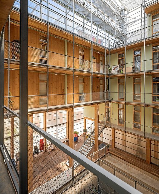 ¿Repensamos la sostenibilidad? La emergencia climática sigue ahí, y el compromiso de Europa pasa por reducir en un 55% las emisiones de carbono a la atmósfera. Teniendo a 8 de cada 10 personas de la población mundial viviendo en ciudades, parece que los edificios serán parte de la solución. ¿Cierto, no? Podría ser, pero también deberíamos de pensar si no estamos, de nuevo, en un nuevo ciclo de consumo y desarrollo, si no se está vendiendo que hay que hacer, construir, regenerar, con tal de que sigamos con una curva ascendente. Seguimos asistiendo, estupefactos, a grandes programas que nos colocan aislamientos de 15 centímetros en las fachadas y luego nos pintan las mismas de negro, en calles mal orientadas, sin una mínima traza de un plan de arbolado perenne y caduco que mitigue la exposición solar, sin que cosas tan bien pensadas en la tradición constructiva como los voladizos, miradores o balcones (que nos protegen y aíslan) aparezcan por ningún lado. Los edificios tienen que servir a las personas, y no ser una moneda de cambio económico. Ejemplos como La Borda, de Lacol Arquitectes, realizado con el apoyo del Ayuntamiento de Barcelona, aúnan un proyecto desde varias perspectivas de la sostenibilidad: desde su vertiente social, al ser una cooperativa de viviendas de un solar cedido por el Ayuntamiento, con un modelo andel, es decir, el inquilino solo puede vender a otros usuarios que vayan a vivir ahí, sin especulación; desde la perspectiva energética, al ser un edificio construido con madera, aislado y con medidas bioclimáticas.