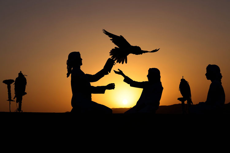 Originaria de Asia y Medio Oriente, la cetrería es una actividad milenaria que consiste en cazar con aves rapaces criadas y entrenadas para esta finalidad. Muy ligados en su historia y su cultura a los beduinos, antiguamente los halcones también se usaban para cazar y sus presas contribuyeron en el desierto a la alimentación, y por tanto a la supervivencia de familias enteras. Quizás por eso, pero también por las horas de preparación, existe un vínculo de fidelidad entre el halconero y el ave.