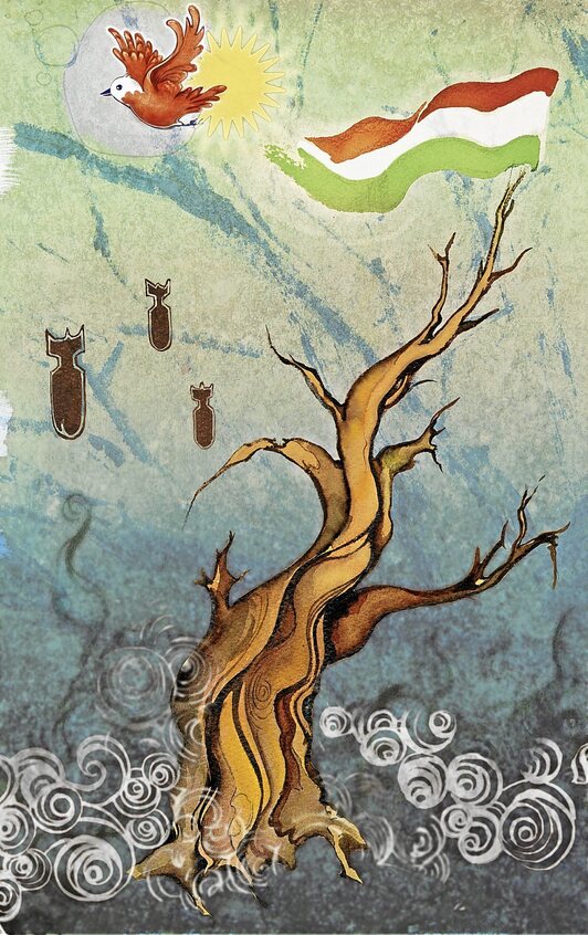 Gurean gero eta gutxiago gara. Gerrak, azkenean, apurka-apurka akabatuko gaitu. Tarteka adar bat mozten digute, ez dakit etxeko zuhaitzak luze iraungo duen. Sustrai sakonak dauzkagu, baina gurean txoriek jada ez dute habiarik egiten. Nebetatik gazteena hil dute orain gutxi, Jihan –uste dut ezagutu zenuela, begi argiak betaurrekoen atzean ezkutatzen zituen hura–. Rojavara joaten tematu zen orain hiru urte. Amak Jainkoari eskerrak eman zizkion bueltan zetorrela esateko deitu zuenean, alferrik. Etxerako bidean Niniven geratu zen, eta gauzak zer diren, pexmerga batzuek akabatu zuten. Inork etxeko atea jo eta lehengusu bigarrenak alaba kotxe berriaz harrapatu duela esango baligu bezala, halaxe geratu ginen, kurduek kurduak zergatik hiltzen dituzten ezin ulertu, eta nahi genuke haserre egon, baina oraindik ez dugu ondo asmatu norekin. Dena da errazagoa etsaiaren trazuak beltz nabarmenez marraztu ditzakegunean. Aldiz, hemen, deabruak kolore asko janzten ditu eta haren itzalak gero eta luzeagoak dira.