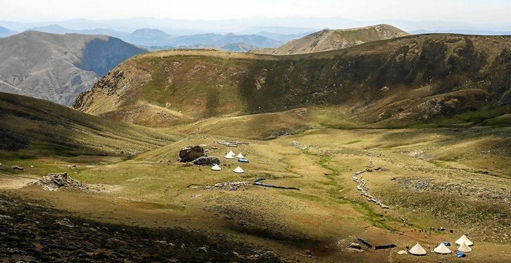 Cuando llega la primavera estos pastores se trasladan a las montañas altas en busca de pastos frescos para sus ovejas y allí instalan su campamento y permanecen hasta el final del verano. Después, cuando las temperaturas bajan, necesitarán quince días para caminar de regreso a sus casas de invierno. La gente de Savak se queja de los precios que pagan y de que no reciben ningún apoyo por parte del gobierno. En familia o en solitario ordeñan sus animales en un altiplano de las montañas Dersim, también conocidas como montañas Munzur, en Tunceli, a 3.200 metros de altura. Allí cargan con los cubos repletos de esa leche que servirá para elaborar sus productos ante la mirada cómplice de niñas y chavales de distintas edades que juegan entre ellos y las ovejas. También deben de estar atentos a que ninguna serpiente ataque a su rebaño, algo que de vez en cuando ocurre.