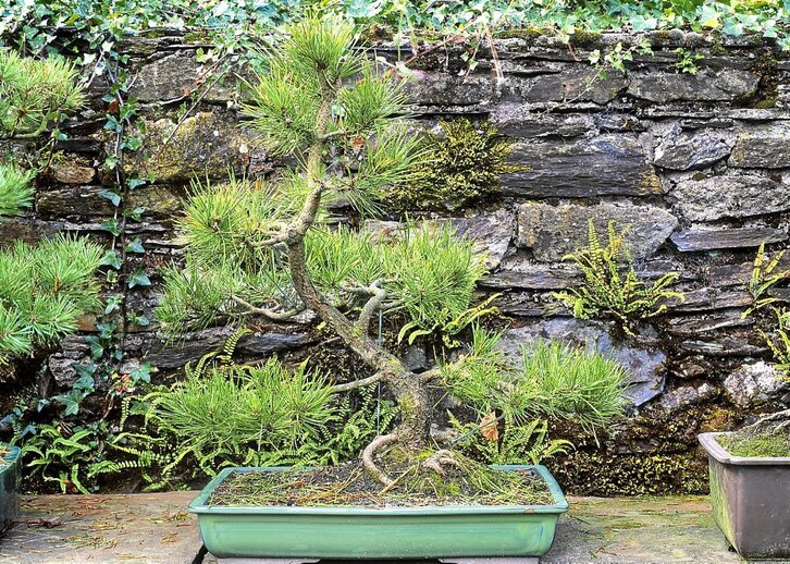 Otros tienen preferencia por suelos ácidos y ligeros. El volumen del tiesto tiene que ir de acuerdo con la especie de pino. Para una variedad con ramas escalonadas, el tiesto debe ser más ancho que alto y para las especies rectas, más alto que ancho. Para que las raíces se instalen bien, una altura de 50 cm es la correcta. Al fondo del tiesto se colocan piedras o trozos de tiestos para que las raíces se agarren. Sobre la tierra de la superficie irán bien piedras decorativas o plantas como sedums que recuerden sus bosques de origen.