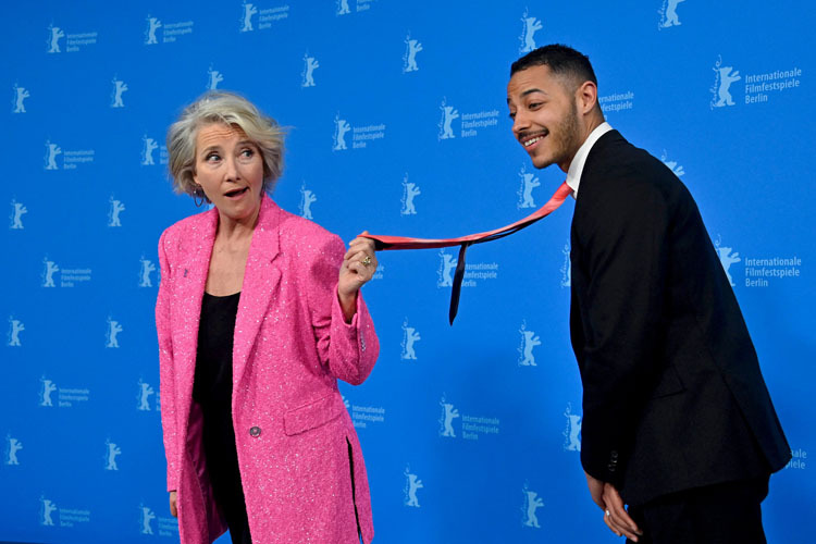 Emma Thompson bromea en el photocall del Festival de Cine de Berlín. Allí su discurso sobre el cuerpo de la mujer madura se convirtió en viral. Fotografía: John Macdougall | AFP