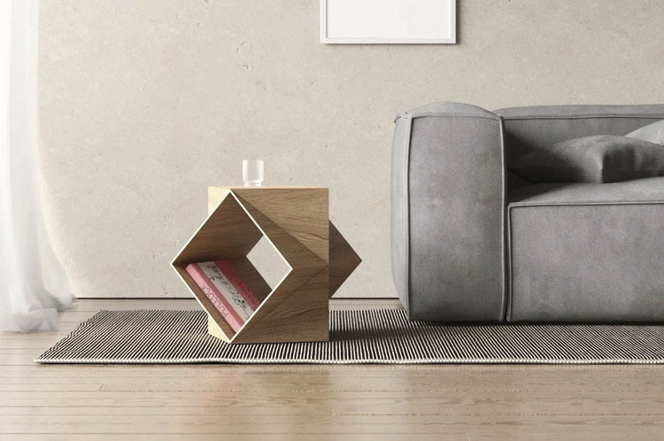 El universo de las mesas auxiliares está en modo de expansión total. Contamos con muchísimas opciones y la cosa aumenta, ya que el mundo del diseño se está moviendo hacia artículos de mobiliario innovadores, pequeños pero funcionales y que sean estéticamente agradables. Los diseños de Deniz Aktay van en esta línea y Tadashi, su nueva pieza, muestra rincones, pliegues y espacios con los que interactuar. Tadashi se presenta bajo la forma de dos cubos que se cruzan. El efecto produce un espacio para el almacenamiento de libros o para que tu mascota pueda descansar, esconderse o dormir. También se puede utilizar para almacenar cojines, almohadas y mantas. El acabado de madera ofrece una calidez natural que le permite adaptarse a la mayoría de los interiores.