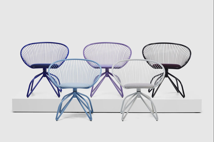 En realidad su nombre es Coquille y haciendo honor a su nombre, su forma está inspirada en las conchas de las vieiras. Fabricada en acero tubular, su forma dramáticamente curvada es un homenaje a lo que sus creadores, el estudio de arquitectura Powerhouse considera «uno de los diseños más increíbles de la naturaleza». El estudio de arquitectura también se basó en las sillas de bistró modernistas de madera curvada y tenía como objetivo reinterpretar el diseño clásico para el momento actual. El resultado final es lo que Powerhouse Company describe como una escultura de una sola pieza, con un grado extremo de flexión en las piernas que los hábiles artesanos de Lensvelt desarrollaron en su fábrica de Italia. «Visualmente, extienden la forma fluida del cuerpo de la silla en una sola línea infinitamente fluida», explican los italianos «y el asiento tapizado se sienta en el centro de la silla como una perla en una ostra». Muy acertada también la paleta de colores. www.lensvelt.nl