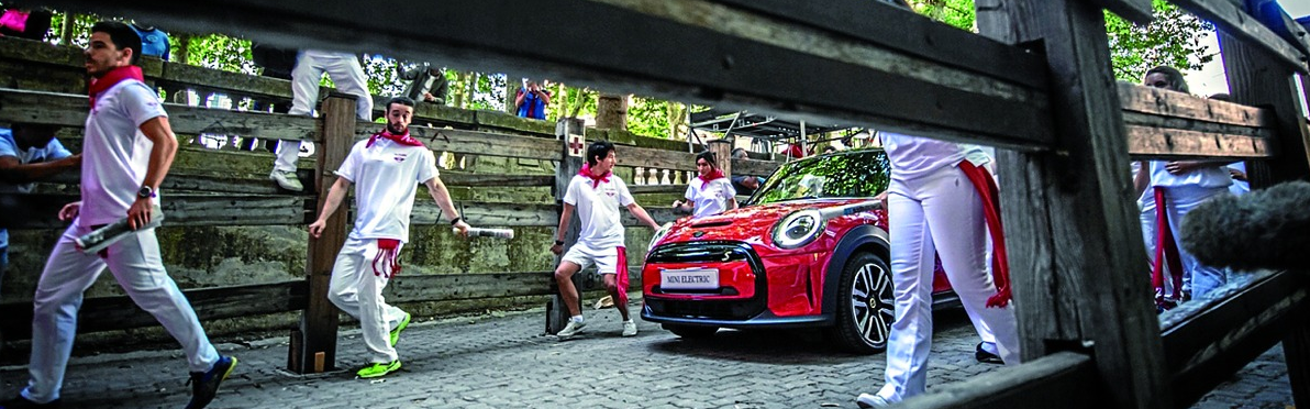 La cuesta de Santo Domingo, la plaza del Ayuntamiento, la calle Estafeta o el callejón de la plaza de toros de Iruñea fueron escenario el pasado día 3 de julio de un peculiar encierro, en este caso protagonizado por trece coches Mini eléctricos, que completaron el tradicional recorrido siguiendo a varias cuadrillas de mozos, que los guiaron con sus periódicos hasta el coso taurino. De la misma forma que los toros, los vehículos aparentaban acometer contra los corredores, ante la mirada atónita de transeúntes. La iniciativa publicitaria, organizada por el concesionario Lurauto, estaba prevista para el año 2020, aunque finalmente hubo de posponerla durante dos años.
