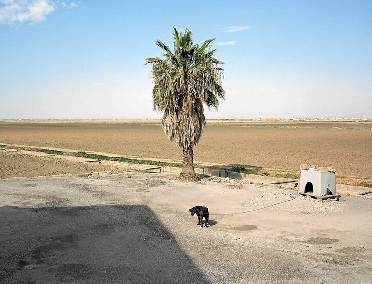 Temáticas como la familia o la prostitución están presentes en estas series que revelan las múltiples acepciones que la espera, como acto y como condición vital, tienen en las vidas de sus protagonistas. En esta tercera serie que se expone en Iruñea, volvemos a encontrarnos con acequias verdosas, casas en construcción, zonas de aparcamiento, chalets unifamiliares o solares repletos de matorrales y óxido. Sin embargo, la figura que sostiene la composición ya no es humana, sino que el autor dedica esta entrega a los perros. Atados con cadenas, dentro de casetas precarias o habitando terrazas, estos animales parecen condenados eternamente al cuidado de un territorio que constriñe su mundo. Lo más desafiante de la serie puede que sea que nos obliga a centrar nuestra reflexión en torno al concepto de paisaje. Como un constructo cultural en el que se depositan las consecuencias de nuestra forma de habitar el planeta y también como una instrumentalización de otras vidas para la garantía de nuestra tranquilidad.