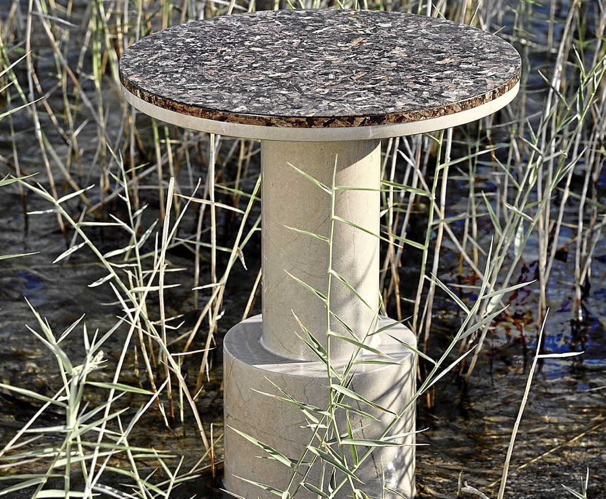 Diseñado por Alexia Mintsouli para el estudio británico Alex Mint, Oceanides es una colección de mesas hechas de plantas marinas y mármol. La innovadora colección incluye una mesa de centro cuadrada y dos mesas auxiliares redondas. El mármol Tortora del Peloponeso se utilizó para elaborar la base y las patas de la mesa, mientras que los tableros de mesa de color marrón se construyeron utilizando la planta marina , «uno de los organismos vivos más antiguos de la Tierra, y que hasta hace poco se desechaba como residuo», explica Alex Mint. Manufacturadas por artesanos griegos, la pieza está inspirada en esa planta acuática del Mediterráneo. Y, según la mitología griega, las Oceanides eran ninfas de mar mitológicas, hijas del Titán Oceanus, el gran río primordial que rodea el mundo, y Tetis, una diosa del mar.