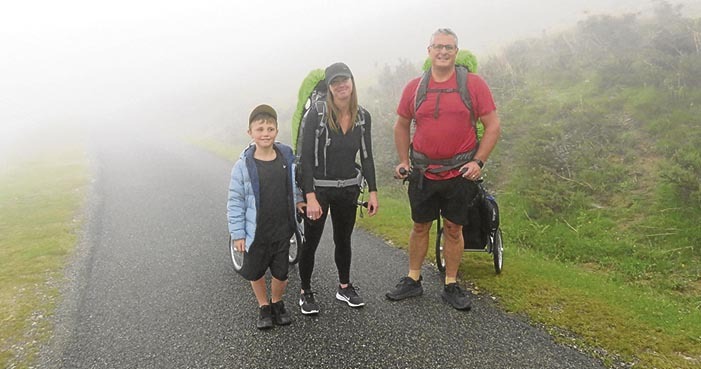 Lainopean, ilun bistan ia, bidea egiten edo bestelako kausaz hil zirenen oroimen harrespila eta plaka ugarik bereganatzen dute ibiltariaren arreta, denak opari edo oroitzapen objektuez zipriztinduta. Elhursaro lepotik gertu Australiako familia bat agertu da gure aurrean bat-batean, mamu ikusezinak balira bezala. Terry da aita, Casey ama, eta Olipha eta Jack 7 eta 4 urteko semeak. Terryk arrastaka darama Jack txikia dagoen gurdia, eta motxila handi-handi bat bizkarrean. Casey emazteak beste maleta bat darama arrastaka. Iraganean gaixotasun larri bat gainditu zuela dio Casey-k, eta herio hartatik libratu zuenari, edo libratzen lagundu zionari eskerrak emateko etorri omen da familia osoa Donejakue bidea egitera. Zeharkaldia 35 bat egunetan osatu nahiko lukete, eta meritu itzela dute, ia-ia etxea baitaramate bizkar gainean. Fedea beste ezer baino indartsuagoa zela esan zuen norbaitek aspaldi. Akaso Australiako laukote horren balentria ikusi zuen esan horren egileak bere pentsamenduan.