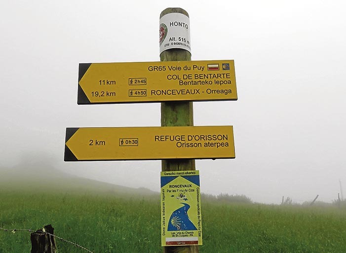 Orisson aterperantz daraman seinaleztapena, lanbropean. Lehen eguna gogor samarra da fisikoki.