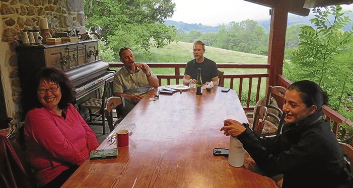 Bixente Egiazabalen La Coquille Napoleon ostatua, Garazin. Argazkian Japoniako Takae, AEBetako Tennessee-ko Mike eta Jason, eta Australiako Bella agertzen dira.