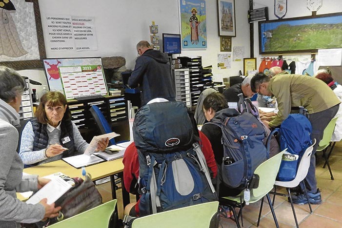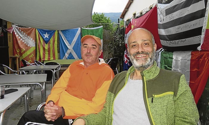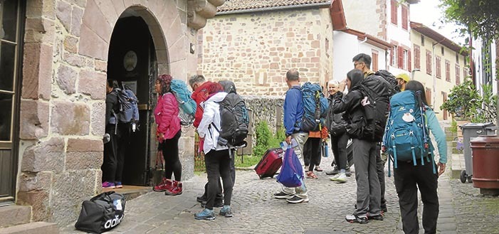 Olivier belgikarra, behinola erromesa, egun Larrasoañako Amari ostatuko jabea, Australiako Jonathanekin. Jonathanek 11 aldiz osatu du, dagoeneko, Donejakue bidea.